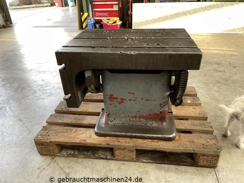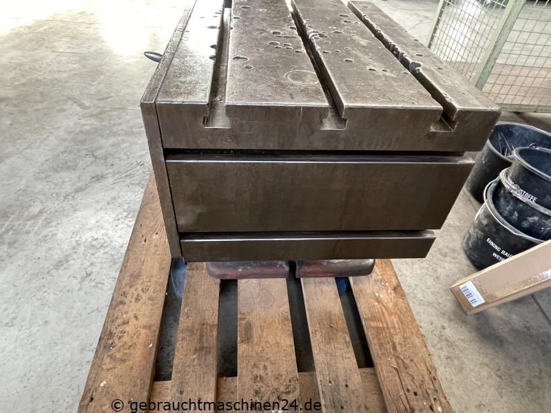 1 schwenkbarer Würfeltisch für Radialbohrmaschinen, Abmessung ca. L 725 x B 550 x H 600 mm mit T-Nuten oben und seitlich (ohne abgebildeten Schraubstock) |