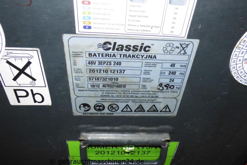 Toyota CBTY4 Elektroschlepper / Elektro Traktor Zugleistung 6 to Baujahr 2005 Batterie 48V 240 Ah Fahrerstand Rundumleuchte 2 Rückspiegel 4-fach luftbereift Anhängerkupplung Beleuchtung vorne und hinten Eigengewicht: ca. 650 kg Abmessungen ca.: 1800 x 950 x 1300 mm |
